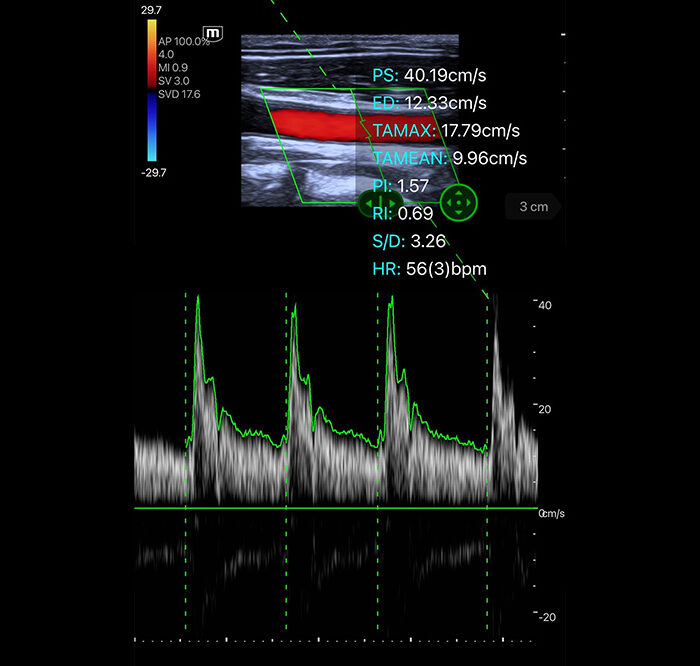 Doppler colorido para fluxo sanguíneo